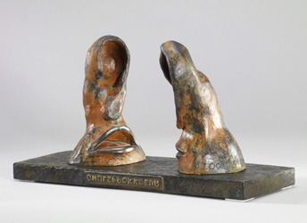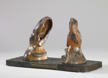 Rückkoppelung, 2004, Bronze ca 16 cm hoch  Multidimensionale Wechselbeziehungen des Individuums sind Grundlage seiner Identität. Zu jedem Zeitpunkt finden unendlich viele Abstimmungsprozesse, sowohl systemintern als auch mit der Umgebung statt.